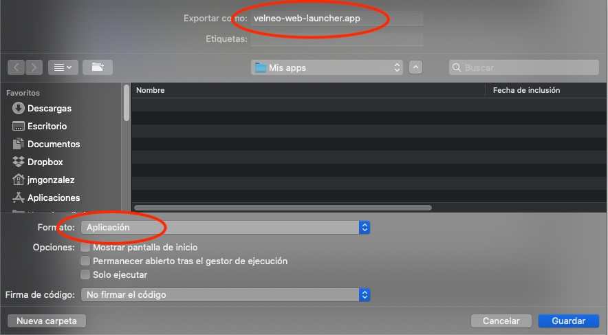 Indicar un nombre e, importante, elegir el formato "Aplicación".