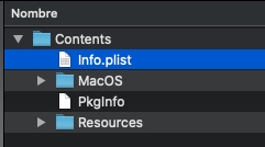 Abrir Contents/Info.plist con un editor de texto: