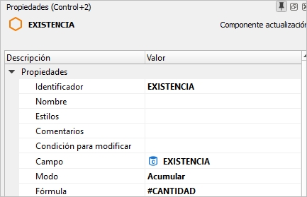 Esta actualización nos permitirá acumular la cantidad del artículo que definamos en tiempo de ejecución para la línea de albarán en curso, y que permitirá calcular la existencia del artículo tras la operación.