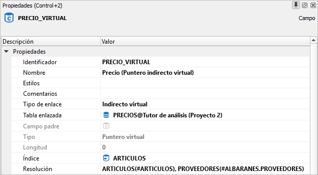 Como la tabla Precios es de tipo histórico y no tiene campo ID, no puede ser maestra de la tabla de Líneas de Albarán. Para ello usaremos puntero indirecto virtual, ya que únicamente vamos a leer un dato y no requiere escritura alguna.