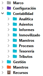 Cada de uno de los módulos dispondrá de una carpeta general y en su interior pueden darse 2 casos: crear subcarpetas con submódulos o crear subcarpetas por tabla. Este segundo caso se da con las tablas de configuración (icono Objetos 5)