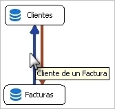 Puntero del ratón: crear enlace plural. Permite crear un enlace plural desde una tabla hasta otra.
