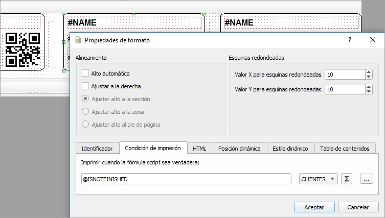 Para evitar esto, usaremos la variable de sistema @ISNOTFINISHED como condición para imprimir; evitaremos que se impriman estas etiquetas de más, mejorando el resultado final del informe.