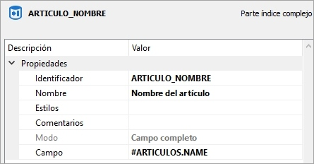 Etiqueta alfanumérica que identifica al componente índice complejo. Este identificador será el que usemos para referenciarlo en otras propiedades.