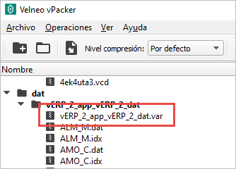 Pero si abrimos un fichero de copia de seguridad de Velneo veremos que el fichero de variables no tendrá el número de instancia como nombre, sino que se habrá asignado el nombre que tiene la instancia del proyecto de datos correspondiente: