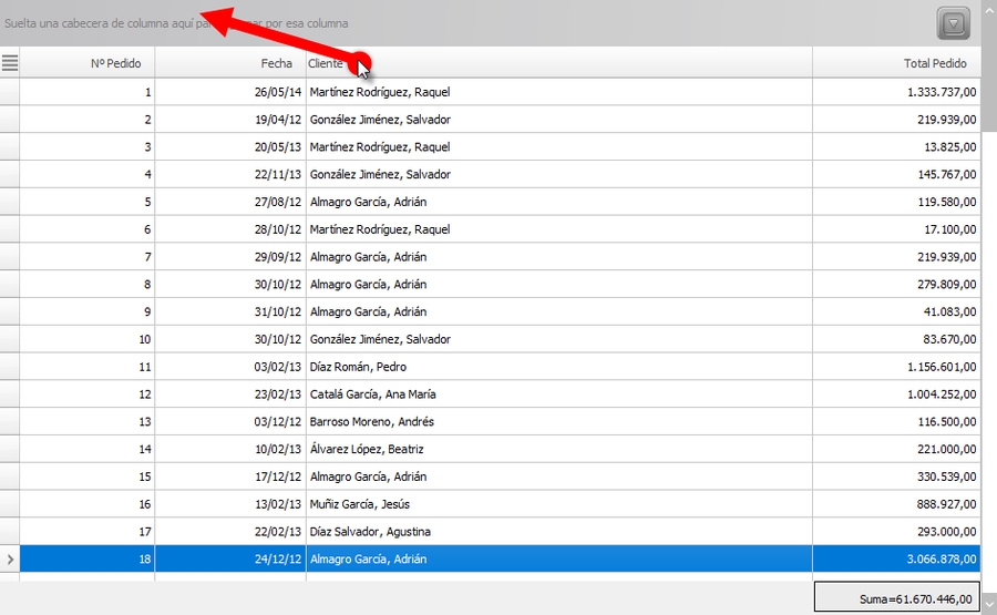 Y verás cómo se agruparán dentro de la rejilla las facturas de cada cliente y con el total acumulado por agrupamiento.