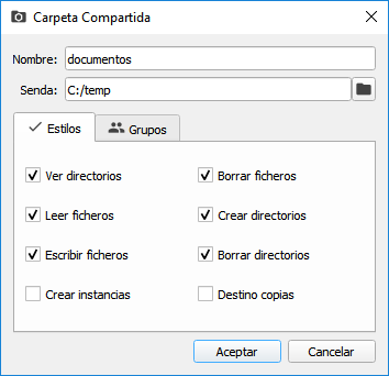 Definir los permisos de acceso a la misma para crear, leer y borrar ficheros: