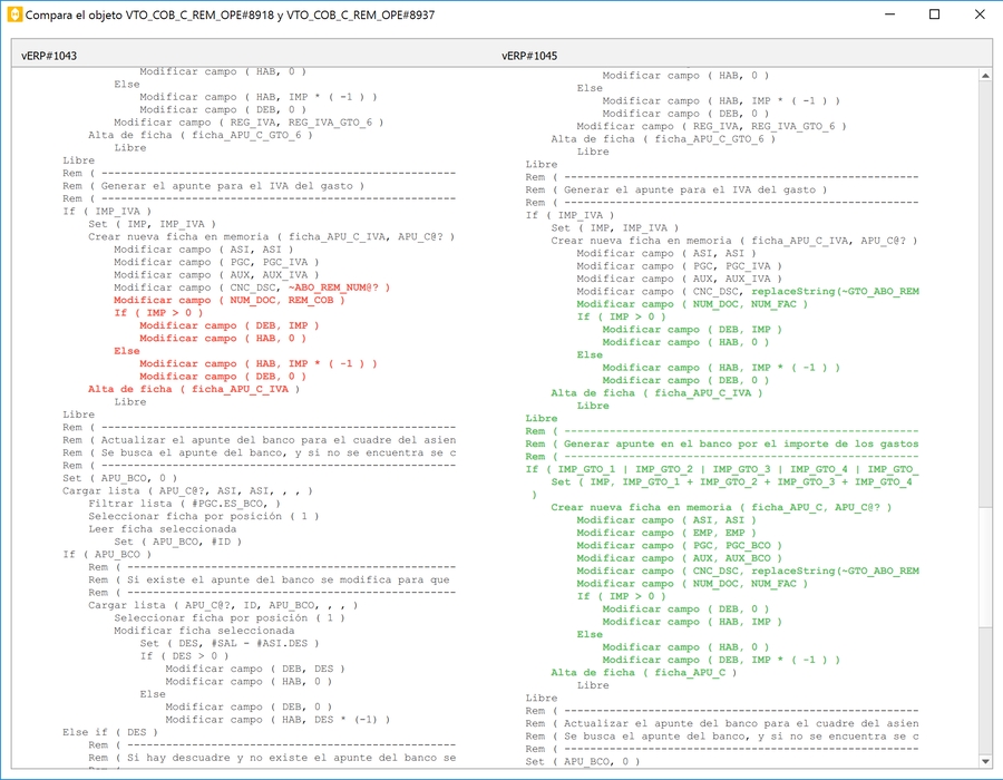 Compara objetos, subobjetos y propiedades de lenguaje Velneo, JavaScript y QML permitiendo conocer detalladamente hasta el más mínimo cambio.