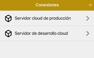 Cuando ejecutamos por primera vez Velneo vClient tanto en Android como en iOS tendremos que configurar la/s conexión/es al servidor o a los servidores con los que queremos conectarnos. Para crearlas, pulsaremos el botón + de la esquina superior derecha de la ventana, especificaremos los datos de conexión (servidor, usuario y contraseña). Una vez creada o creadas las conexiones ya quedarán grabada en la lista de conexiones y en futuras ocasiones simplemente tendremos que seleccionarla para establecer la conexión, pues recordarán las credenciales: