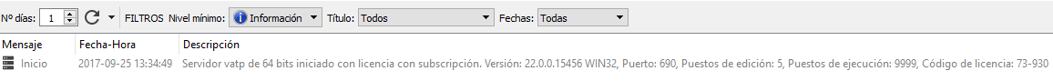 Permite filtrar por el título del mensaje, es decir, mostrar solamente los mensajes que tengan un título concreto (Inicio, Error vatp, etc.).