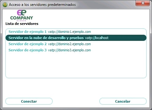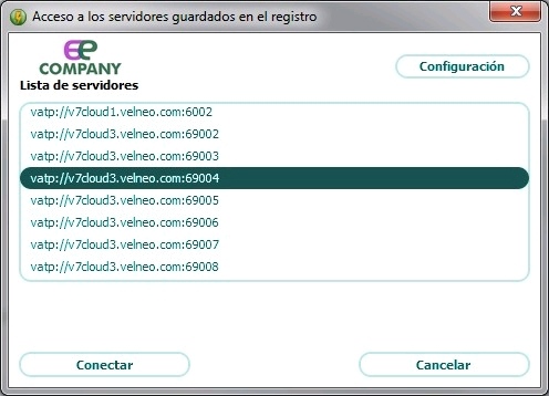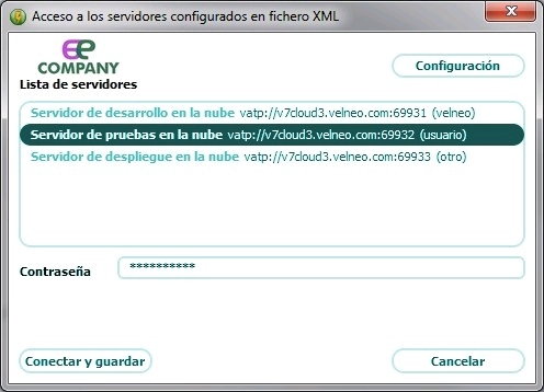 Estableciendo una lista de datos de acceso fijos entre las que el usuario elegirá, es decir, datos de acceso predeterminados no modificables por el usuario en la ventana de conexión y que incluyan toda la información de acceso: VRL, usuario y contraseña por defecto, permitiendo al usuario introducir la contraseña.