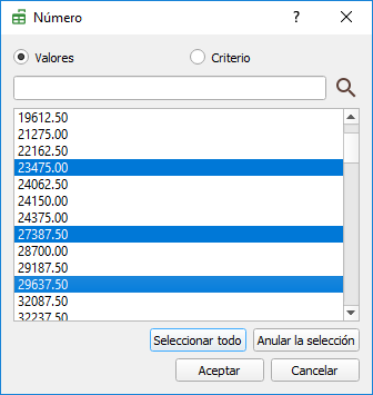 Si seleccionamos una o más filas de una misma columna, podremos dejar en la lista solamente aquellos registros que en la columna seleccionada contengan los mismos valores que los seleccionados.