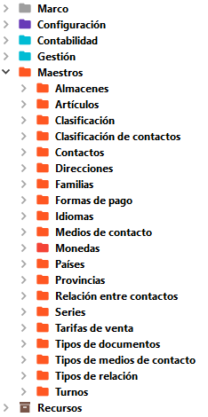 Y con las tablas maestras (icono Objetos 3) comunes para todos los módulos.