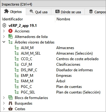 Como puede apreciarse en la captura de pantalla anterior, cada nodo de la lista se corresponde con un tipo de objeto. Si queremos localizar un objeto concreto, por ejemplo, un informe, desplegaremos el nodo correspondiente y éste contendrá todos los informes del proyecto ordenados alfabéticamente: