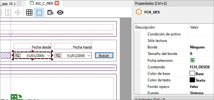 Si hacemos doble clic sobre el error, automáticamente será editado el subobjeto donde se encuentra el mismo, en este caso, se abrirá el cuadro de propiedades del control del formulario que contiene el error: