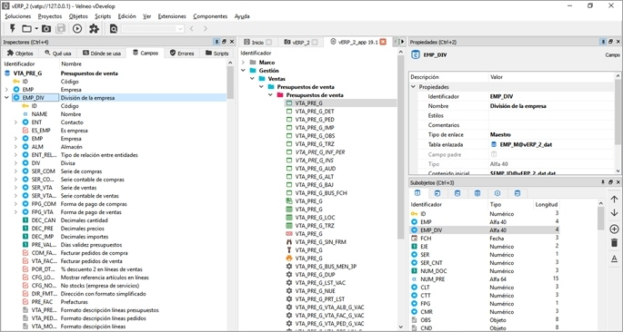 Si editamos y modificamos un campo de un desde un proyecto heredado no debemos olvidarnos de guardar cambios en el proyecto de datos heredado antes de cerrar la sesión de Velneo vDevelop.
