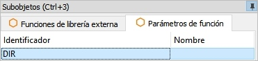 del panel de subobjetos del panel de propiedades del objeto y seleccionaremos la opción Función de librería externa.