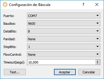 Desde esa misma ventana el usuario también podrá probar si la comunicación con el dispositivo es o no correcta, para ello se pulsará el botón “Test”; al hacerlo se presentará la ventana siguiente: