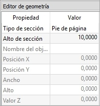Se trata de una herramienta de ventana que pueda ser habilitada a través de la opción editor de geometría del menú ver. Esta ventana muestra información de la posición y el tamaño del objeto o de la sección en curso. El objeto o la sección en curso serán activados mediante un clic del ratón. Podemos teclear el número correspondiente al tamaño o a la posición dentro de los controles correspondientes. Cualquier cambio que se haga en las propiedades del objeto será actualizado de forma inmediata.