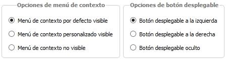Tipo de menú de botón: permite incluir dentro del control un botón que al pulsarlo desplegará el menú que se indicará en la propiedad siguiente. Los valores posibles son: