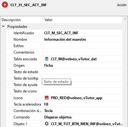 En todos los casos vamos a usar el mismo objeto menú, al que hemos llamado CLT_M_TUT_BTN_MEN y que encontraremos dentro de la carpeta de objetos de este tutor. Que estará compuesto por las acciones siguientes: