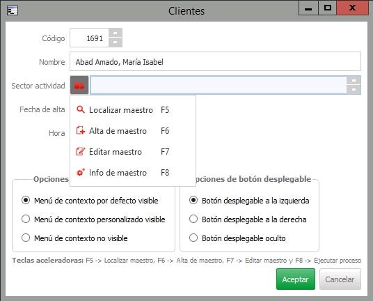 Tipo de menú de contexto: permite asignar un menú de contexto al control. Los valores posibles son: