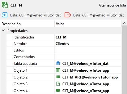 Tabla asociada: tabla de un proyecto de datos heredado cuyos registros van a ser visualizados en el objeto. En este caso la tabla es CLT_M.