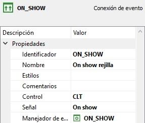 En la propiedad control hemos seleccionado el control que hará que se dispare la conexión de evento, en este caso la rejilla.