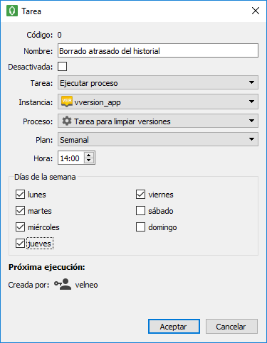 En Velneo vAdmin podremos programar una tarea para que haga un borrado del historial atrasado de versiones.