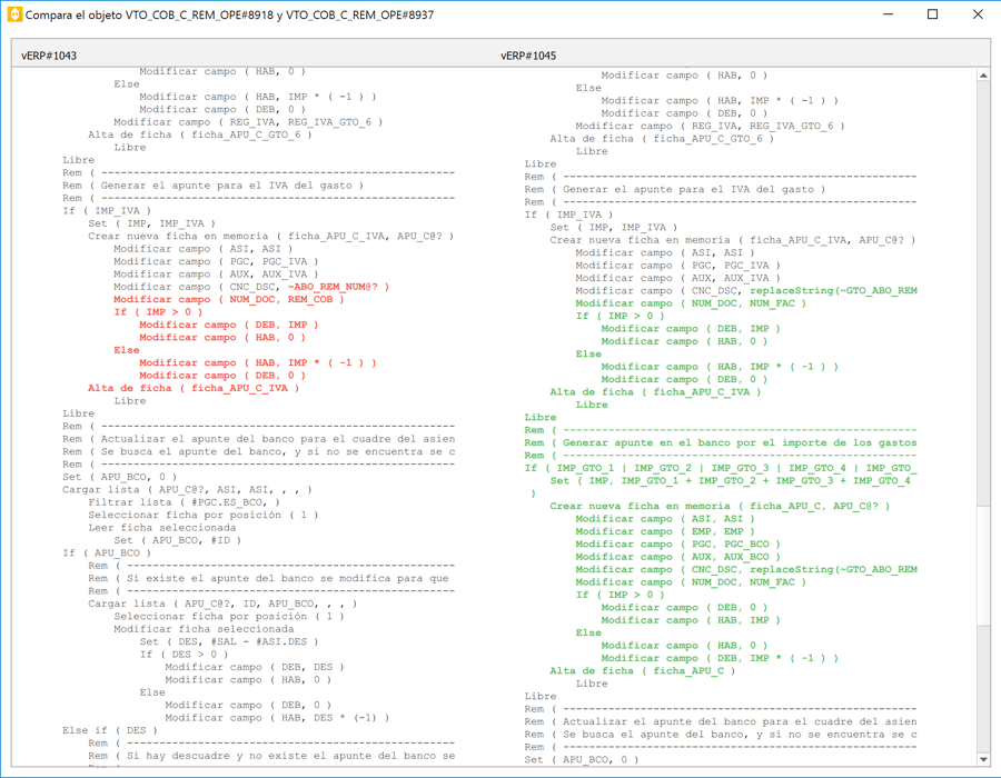 Los desarrolladores pueden conocer los cambios de un objeto directamente desde el editor de vDevelop, facilitando la comparación entre versiones y la auditoría de modificaciones sin salir del flujo de trabajo de desarrollo.