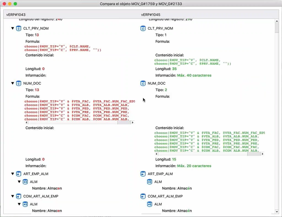 Compara objetos, subobjetos y propiedades de lenguaje Velneo, JavaScript y QML permitiendo conocer detalladamente hasta el más mínimo cambio.
