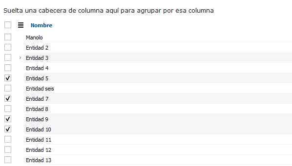 Si así se ha programado, es posible seleccionar más de un registro en una rejilla avanzada para luego realzar alguna acción con ellos. Podremos hacer la selección, bien con el ratón, o bien a través del teclado o combinando ambos.