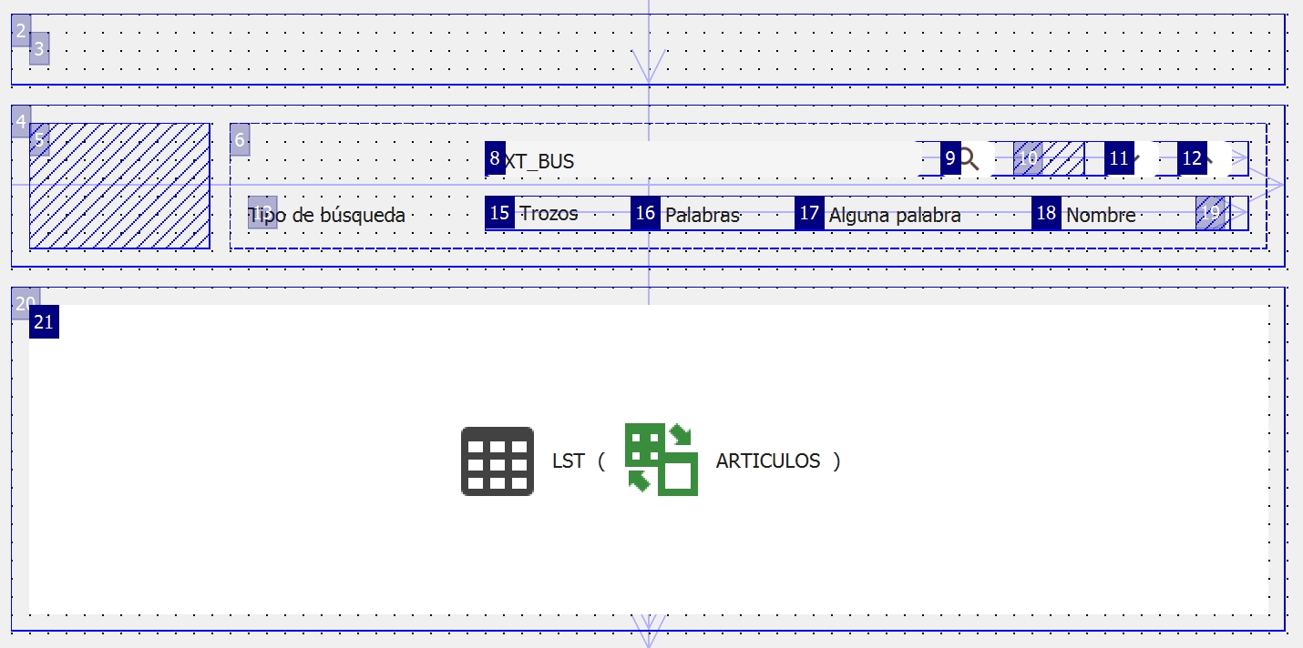 Los layouts y controles que contiene el formulario se distribuyen horizontalmente en función de los valores posibles:
