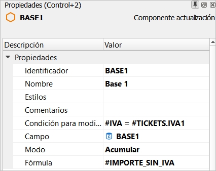 La tercera actualización a TICKETS consiste en Acumular el contenido del campo Importe con IVA (#IMPORTE_IVA