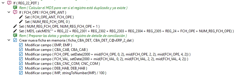 Si el cambio de un código requiere ser documentado y declarado de forma explícita se añadirá tras el comentario descriptivo de inicio de código una o varias líneas de log. Estas líneas estarán separadas de la descripción inicial por una línea libre.