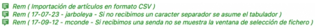 Si una vez añadida la línea Rem de la descripción general es necesario poner un comentario antes de la primera línea de código se separarán ambas líneas de comentarios por una libre.