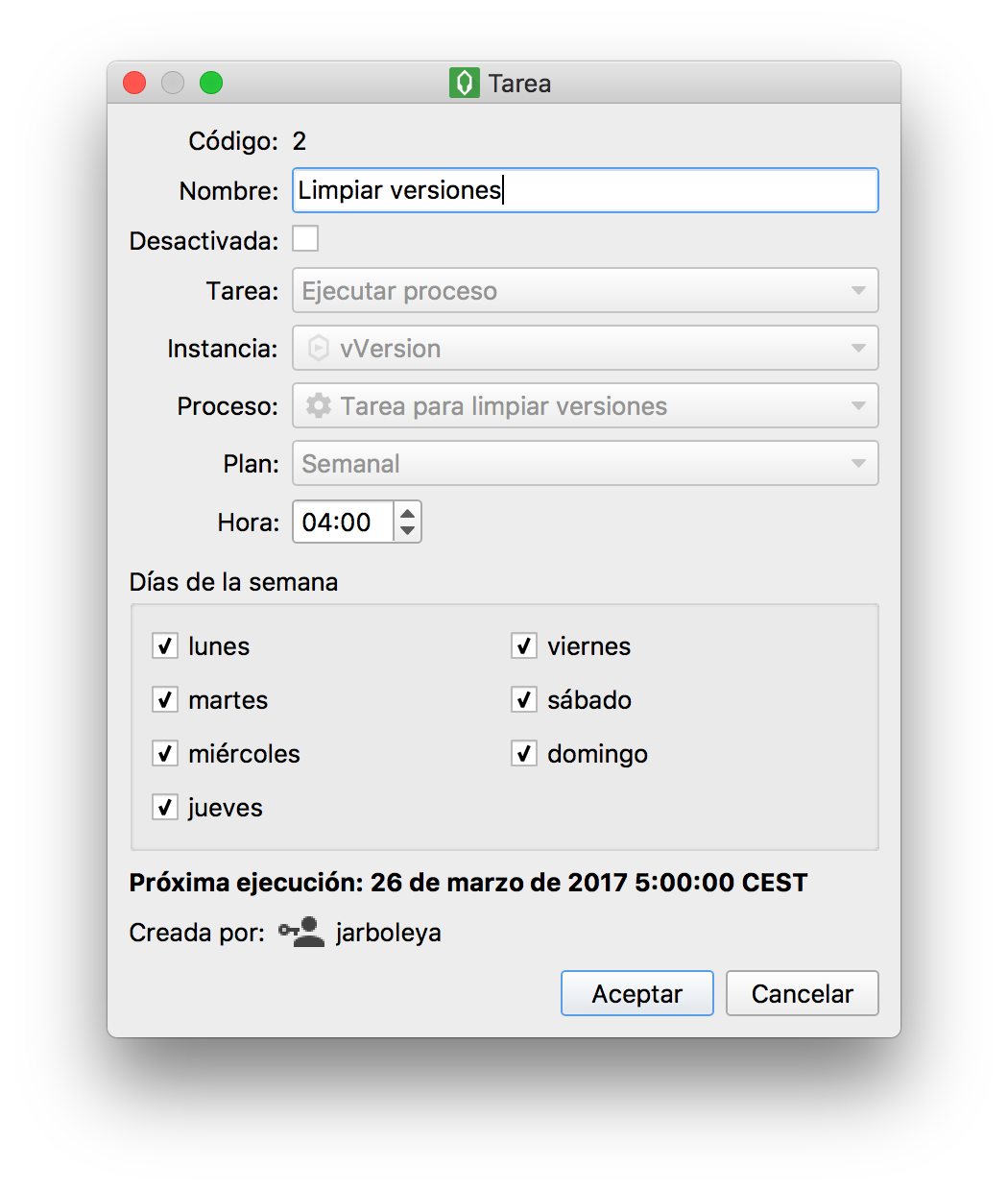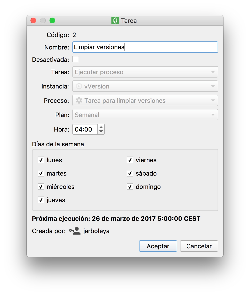 Después crearemos una tarea en el servidor que se encargará de limpiar las versiones caducadas que no estén marcadas para no ser borradas, por ejemplo versiones o revisiones cerradas que nos pueden interesar mantener. Consultar la documentación y especificaciones del componente.