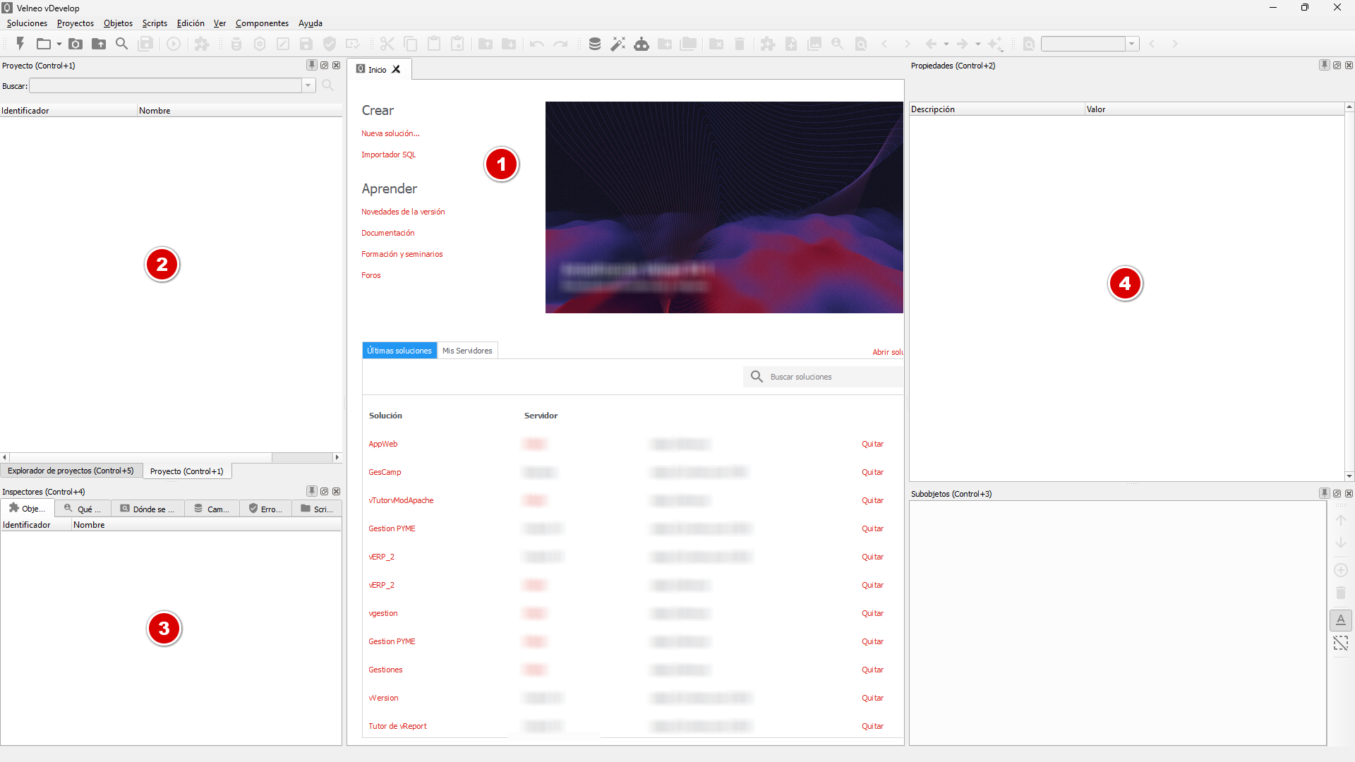 Velneo vDevelop inicialmente se abre tal y como se muestra en la imagen siguiente: