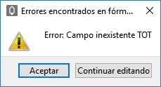 Si al aceptar una fórmula el sistema detecta algún error, éste mostrará una ventana advirtiéndolo: