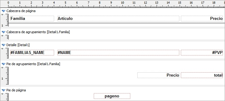 Para aplicar los cambios pulsar el botón aceptar en el diálogo del grupo y luego en el diálogo del detalle. Después de hacer esto tanto el encabezado como el pie del agrupamiento aparecerán.