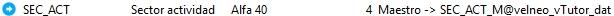 Por un lado tenemos la tabla de Sectores de actividad (SEC_ACT_M) y por el otro la tabla de Clientes (CLT_M). Esta última contiene un enlace maestro a Sectores de actividad: