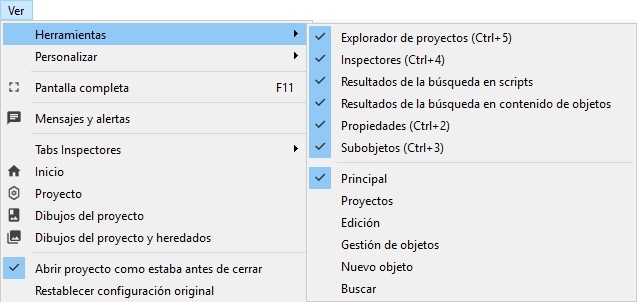 Ver u ocultar barras de herramientas